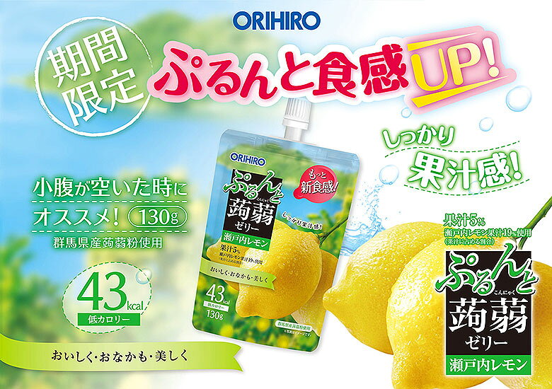 5月1日限定 【店内全品ポイント最大12倍】 【何度も使える100円クーポン】 オリヒロ ぷるんと蒟蒻ゼリー スタンディング 瀬戸内レモン 130g×1個 orihiro / こんにゃくゼリー ゼリー スイーツ スィーツ ひんやり 低カロリー ダイエット お菓子 期間限定 夏バテ